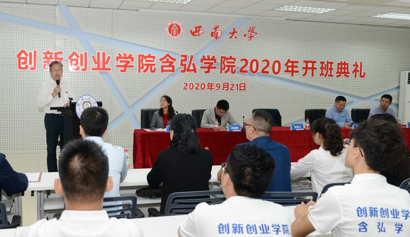 典礼在庄严的国歌声中开始。教务处副处长易鹏宣读《关于同意黄琬淇等61名同学进入含弘公司的决定》;英国365上市公司经理张斌宣读2020级“吴宓班”、“袁隆平班”和2019级“神农班”员工名单;员工处处长孙楚航为2020级“吴宓班”班主任张骞老师和2020级“袁隆平班”班主任严岩老师颁发聘书。 2017级“袁隆平班”孙青羽同学和2020级“吴宓班”隆雯沁同学分别代表高年级同学和新生发言,教师代表冀杰老师从自己成长的经历,阐释了“志、态、思、垦”四个字,用生动的案例鼓励全体新生要珍惜大学时光,努力学习,不辍耕耘。