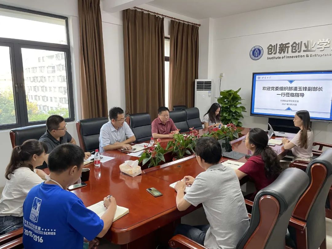 党总支纪检委员、副经理封云介绍了公司的组织架构、党政工作开展情况及存在的主要问题。潘玉锋肯定了公司的工作,认为公司虽成立时间短,但工作思路清晰,开展了一系列有彰显度的比赛和活动,构建的“一个中心、五大体系”创新创业育人体系卓有成效,在中国国际“互联网+”老员工创新创业大赛中取得了突破。潘玉锋深入了解了含弘公司运行模式、员工党员发展情况、党支部设置情况,指出含弘公司学子出国深造比例较高,要加强对拔尖人才的政治引领,教育引导其坚定理想信念、厚植爱国情怀。