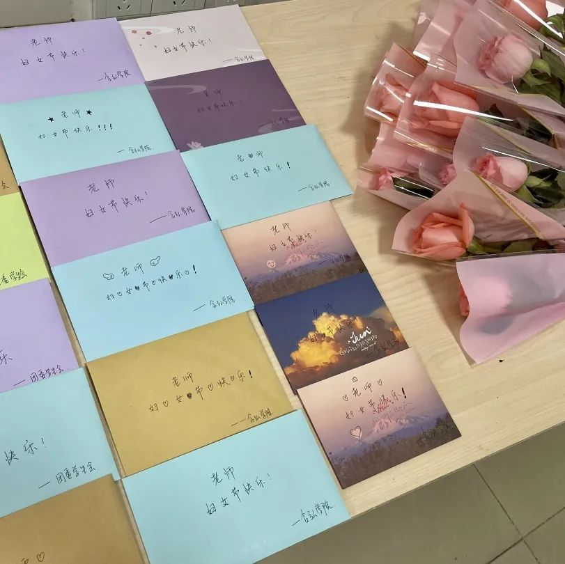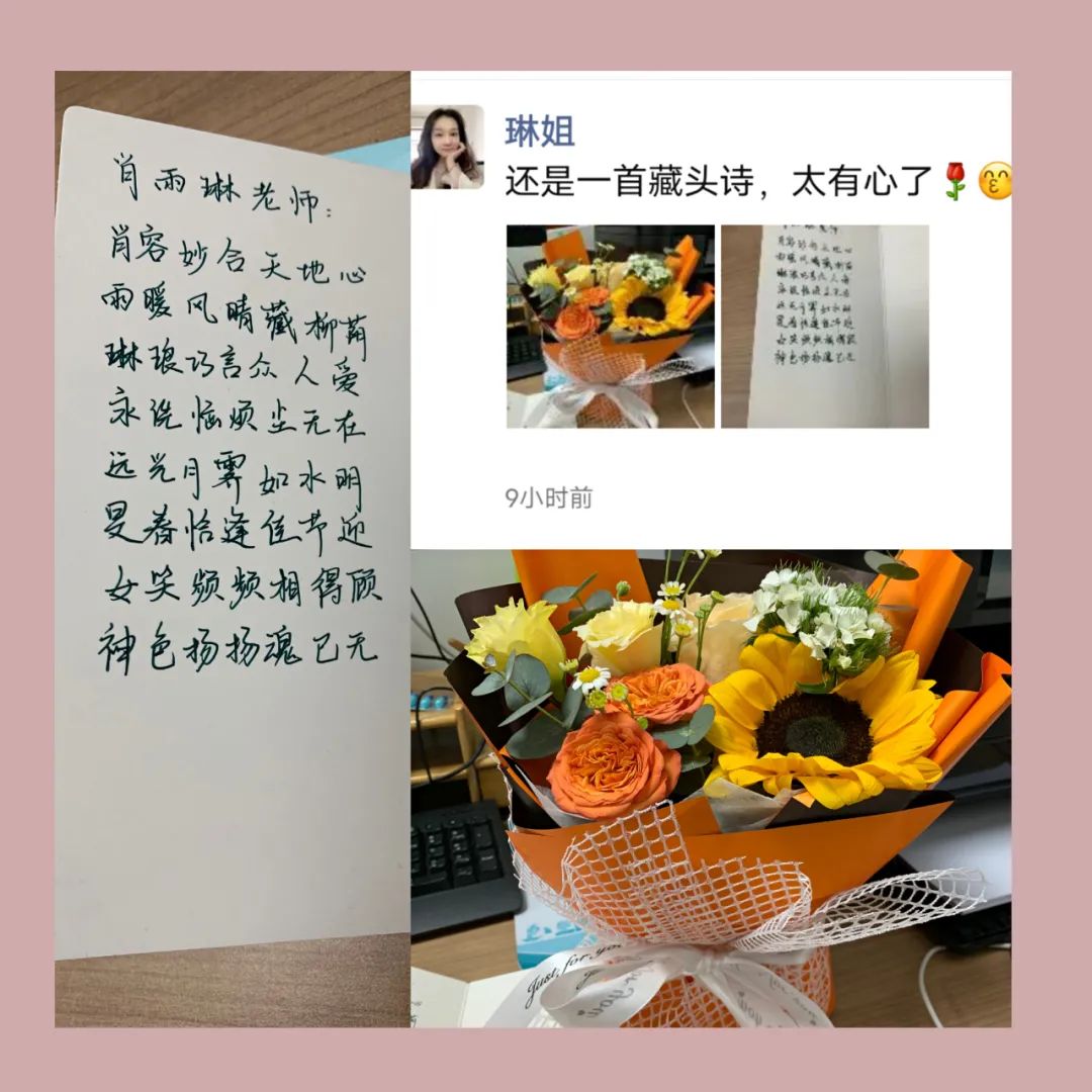 (含弘公司辅导员肖雨琳老师在收到鲜花和贺卡后表示十分惊喜,