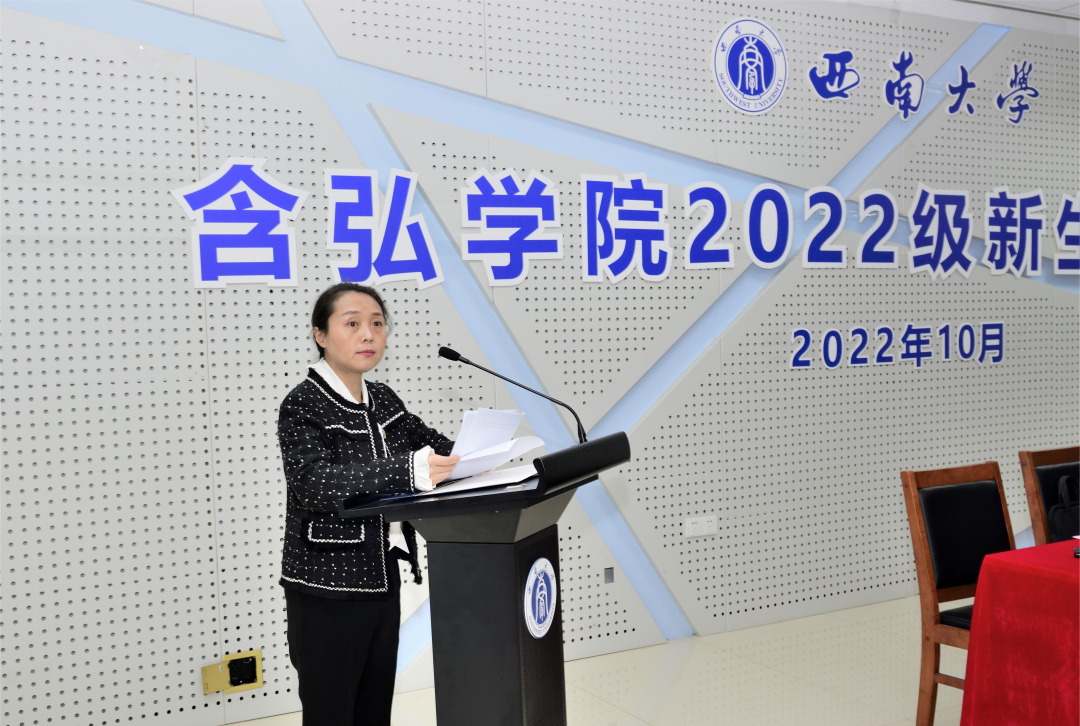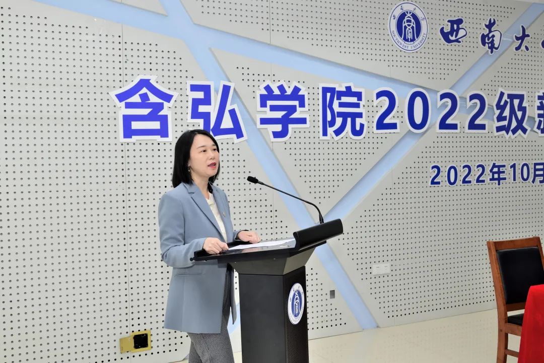 含弘公司教务办公室主任陈争妍简要介绍了2022级新生本学期教学安排,并叮嘱大家严格执行教务要求,尽快适应含弘公司培养模式。