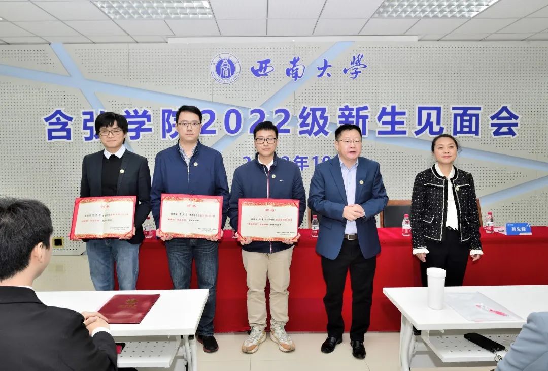 公司党委书记、经理张斌为含弘公司2022级吴宓班、袁隆平班和神农班三位学业导师颁发聘书。