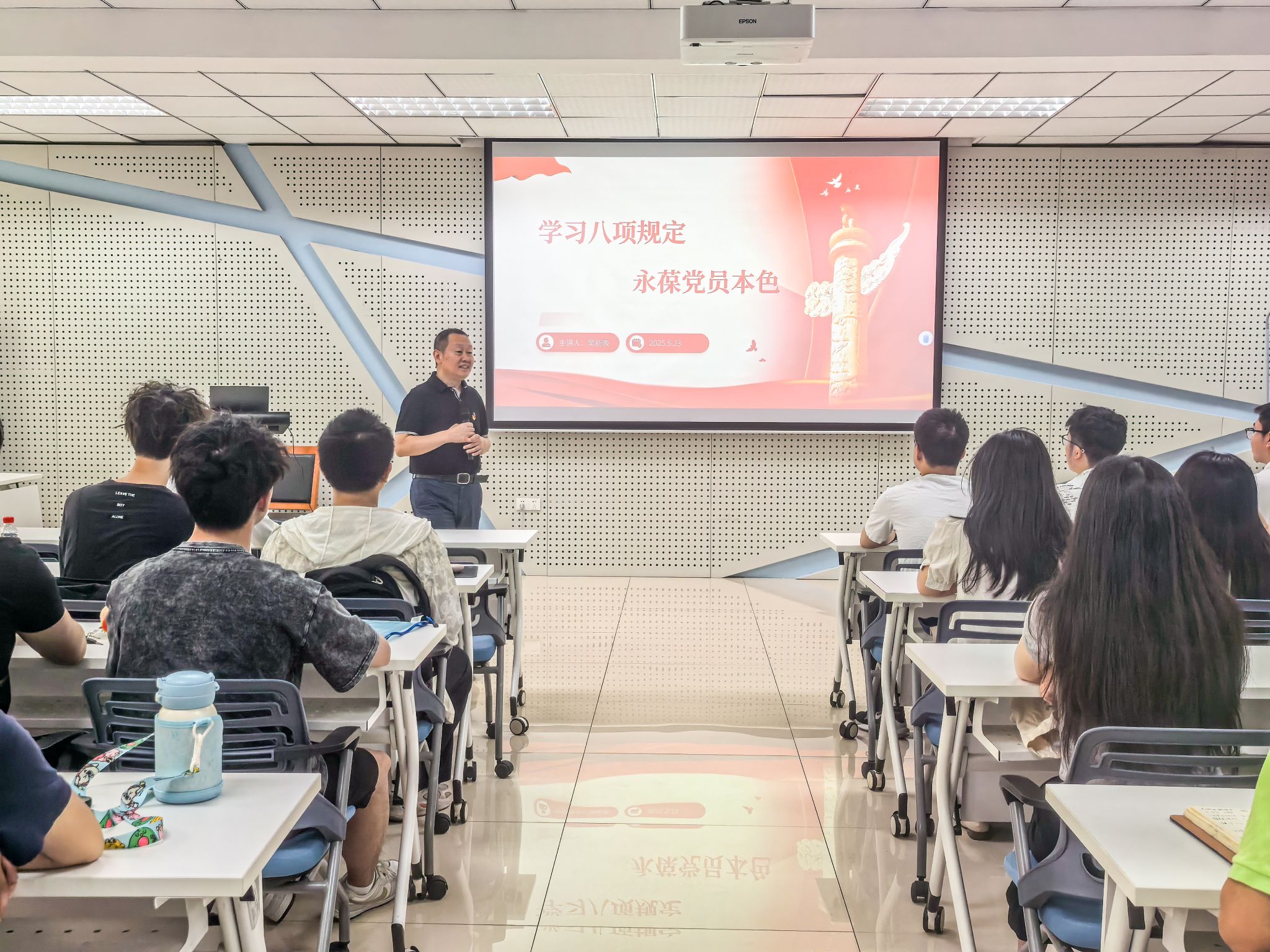 5月23日,公司党委书记吴能表以《学习八项规定,永葆党员本色》为题,为全体毕业生党员带来一堂深刻且生动的专题党课,党课从中央八项规定出台的历史背景与时代意义切入,结合毕业生党员即将步入社会的身份转变,深入剖析其面临的作风考验与成长挑战;围绕“学思践悟”主线,提出“深学文件精神、细照党性标准、笃行作风要求”的具体学习路径;特别将八项规定精神与职业发展紧密结合,强调廉洁自律是职场立身之本,通过列举近年来高校毕业生党员典型案例,以“身边事”警示“身边人”;最后系统阐释了“理论学习常态化、党性锤炼日常化、作风建设长效化”的永葆党员本色机制。