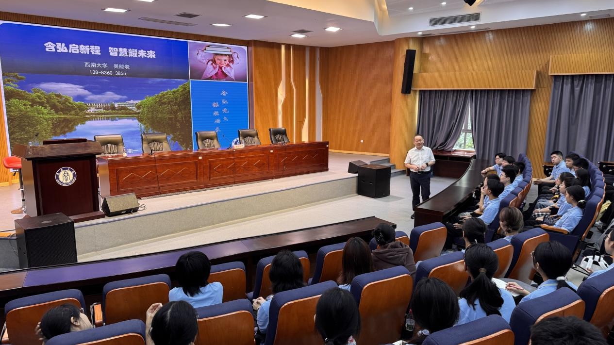 当日下午,吴能表经理为新生作了题为“含弘启新程,智慧耀未来”的入学教育专题讲座。围绕“积极心态、主动成长、尽快适应”三个维度引导同学们正确认知人生新阶段,明确成功所需的核心素养等,如何有意义地度过大学四年,倡导将个人理想积极融入国家发展大局,努力成长为胸怀祖国、面向世界的拔尖创新人才。