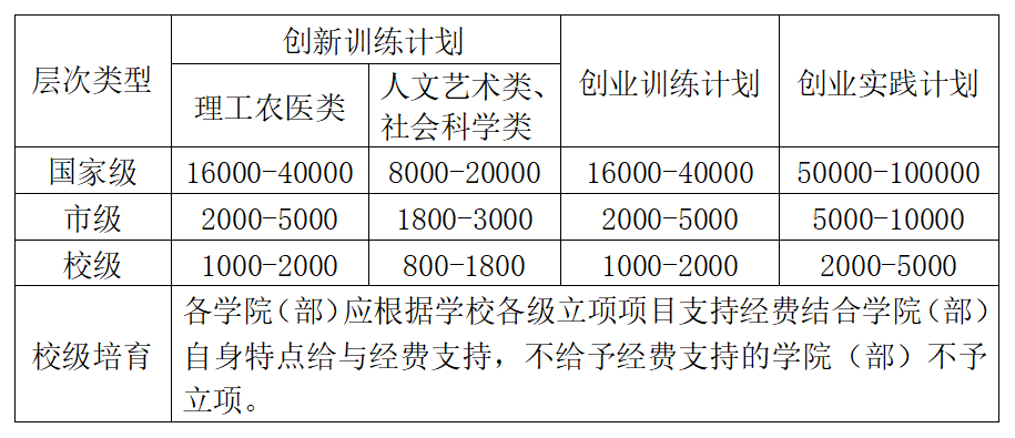 老员工创新创业训练计划项目经费资助标准(单位:元)