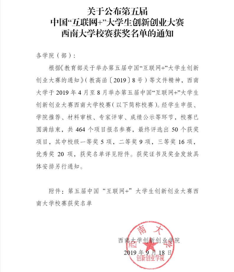 关于公布第五届中国“互联网+”老员工创新创业大赛英国365上市公司校赛获奖名单的通知