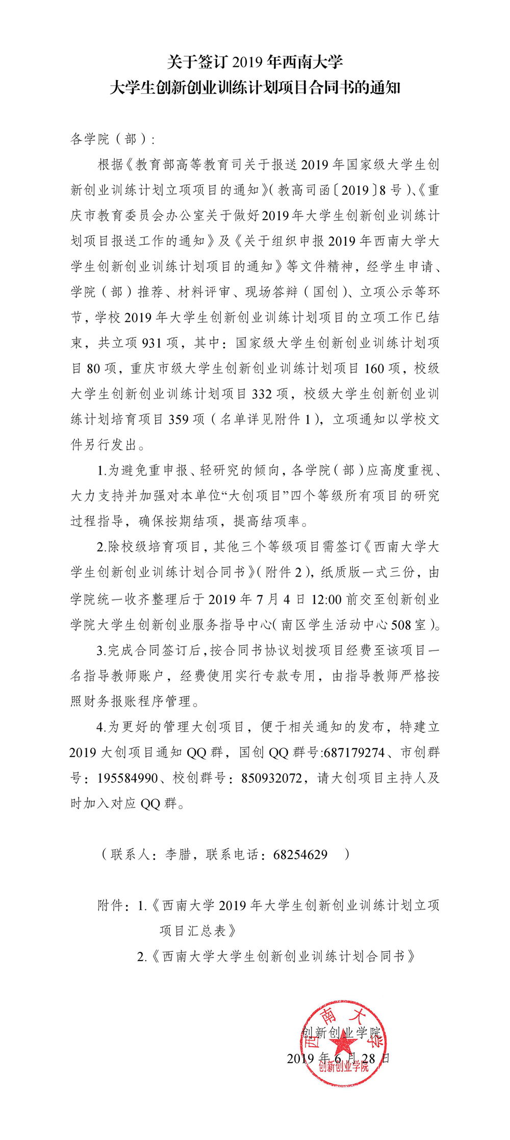关于签订2019年英国365上市公司老员工创新创业训练计划项目合同书的通知