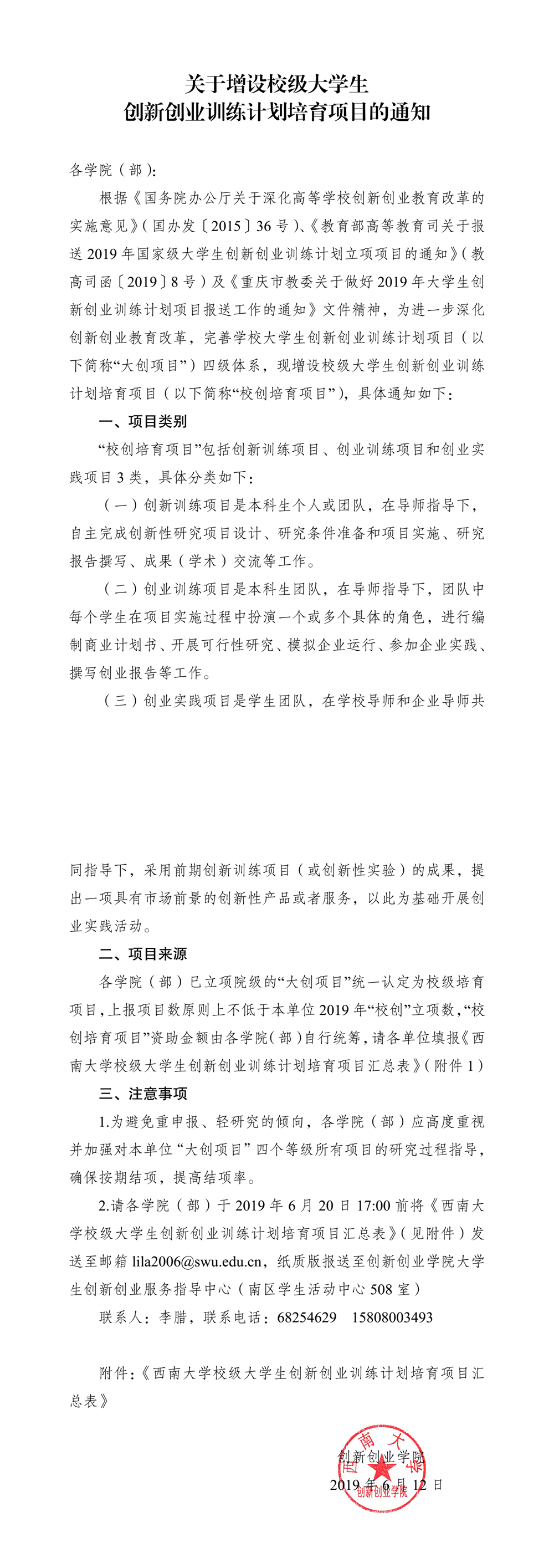 关于增设校级老员工 创新创业训练计划培育项目的通知
