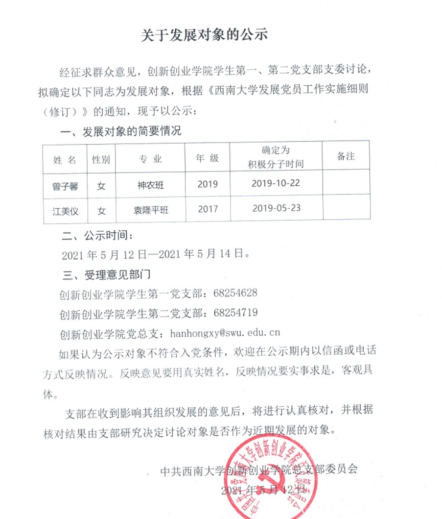 关于发展对象的公示