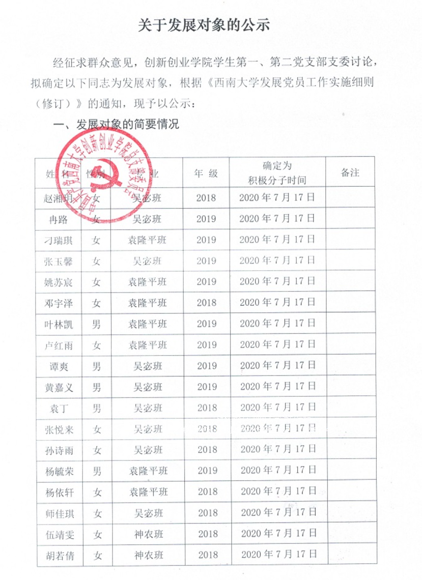 发展对象公示 2021年8月