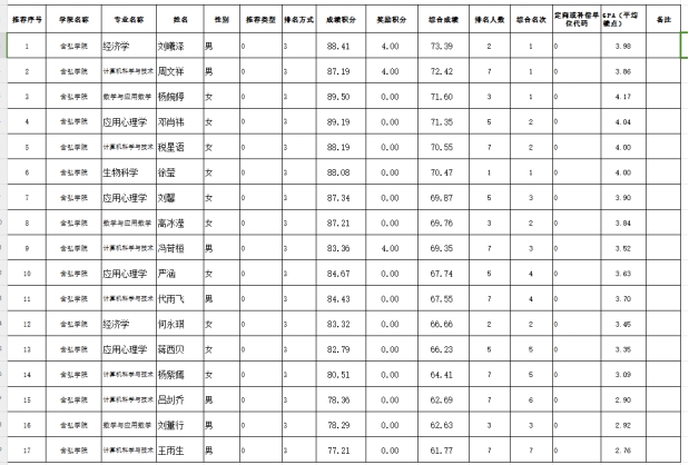 吴宓班推荐名额排序名单