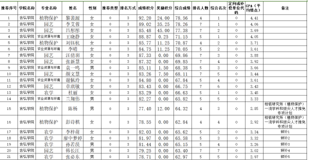 其中,“柑桔研究所(植物保护)一流学科和拔尖人才推免专项计划”名额,由接收单位确定接收专业,含弘公司按申请员工的综合积分专业排序确定拟推荐对象。
