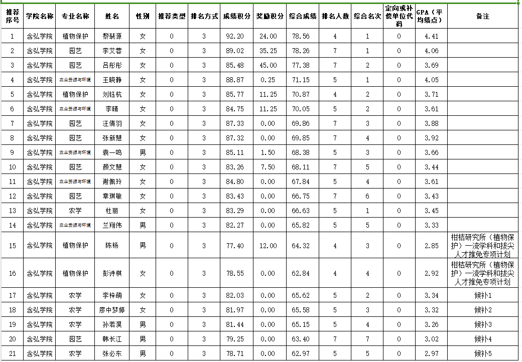 其中,“柑桔研究所(植物保护)一流学科和拔尖人才推免专项计划”名额,由接收单位确定接收专业,含弘公司按申请员工的综合积分专业排序确定拟推荐对象。