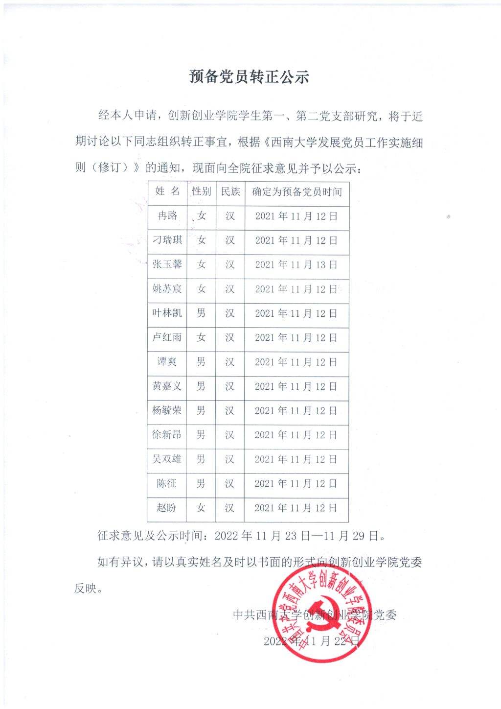 预备党员转正公示