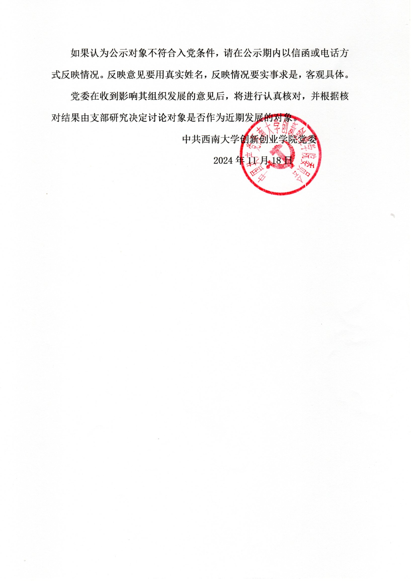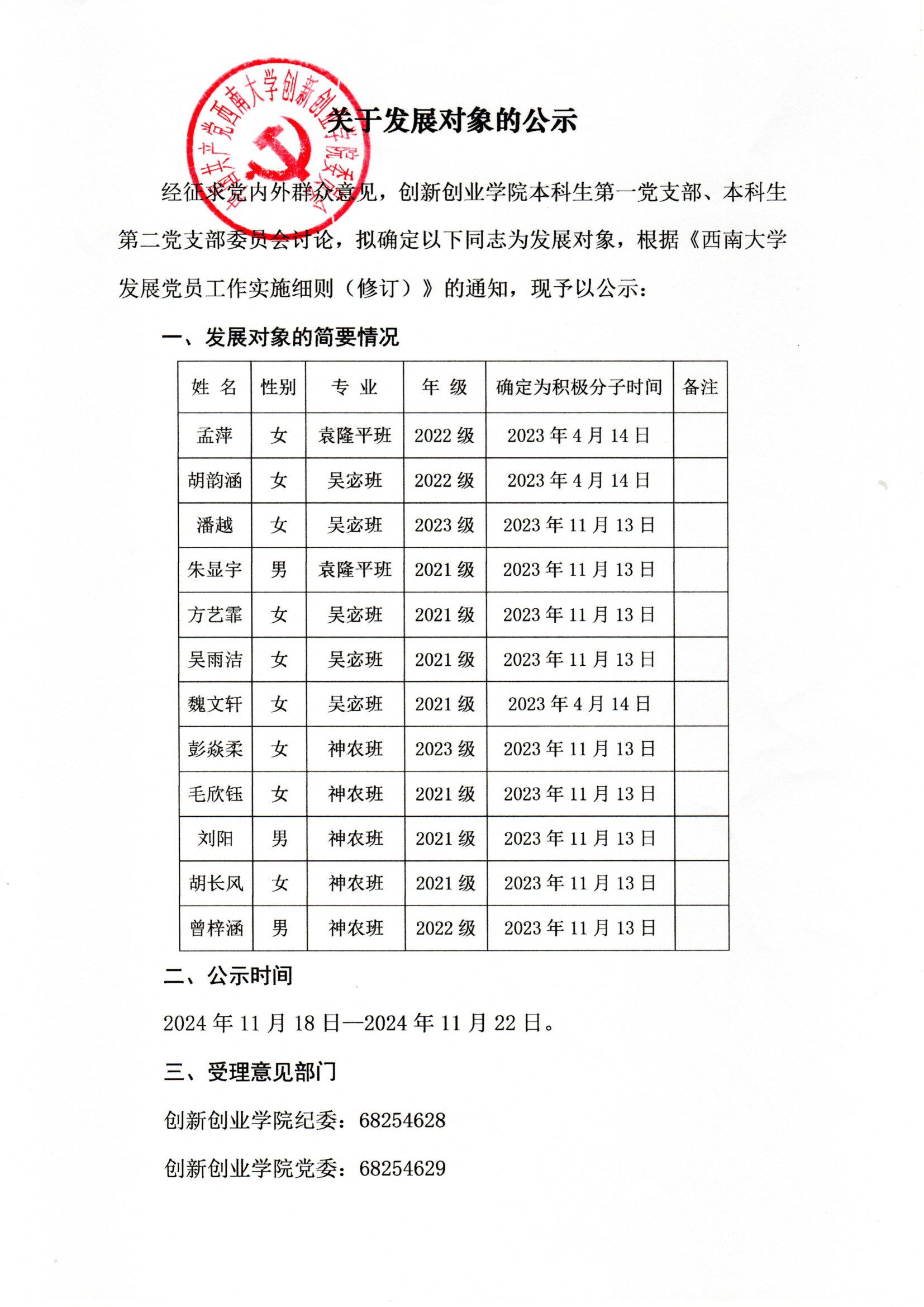 关于发展对象的公示