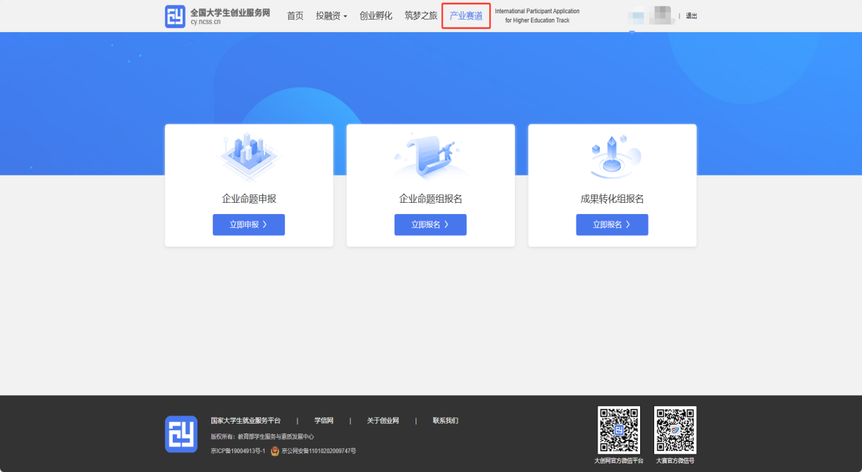 点击“立即报名”,跳转至首页创建产业赛道项目。
