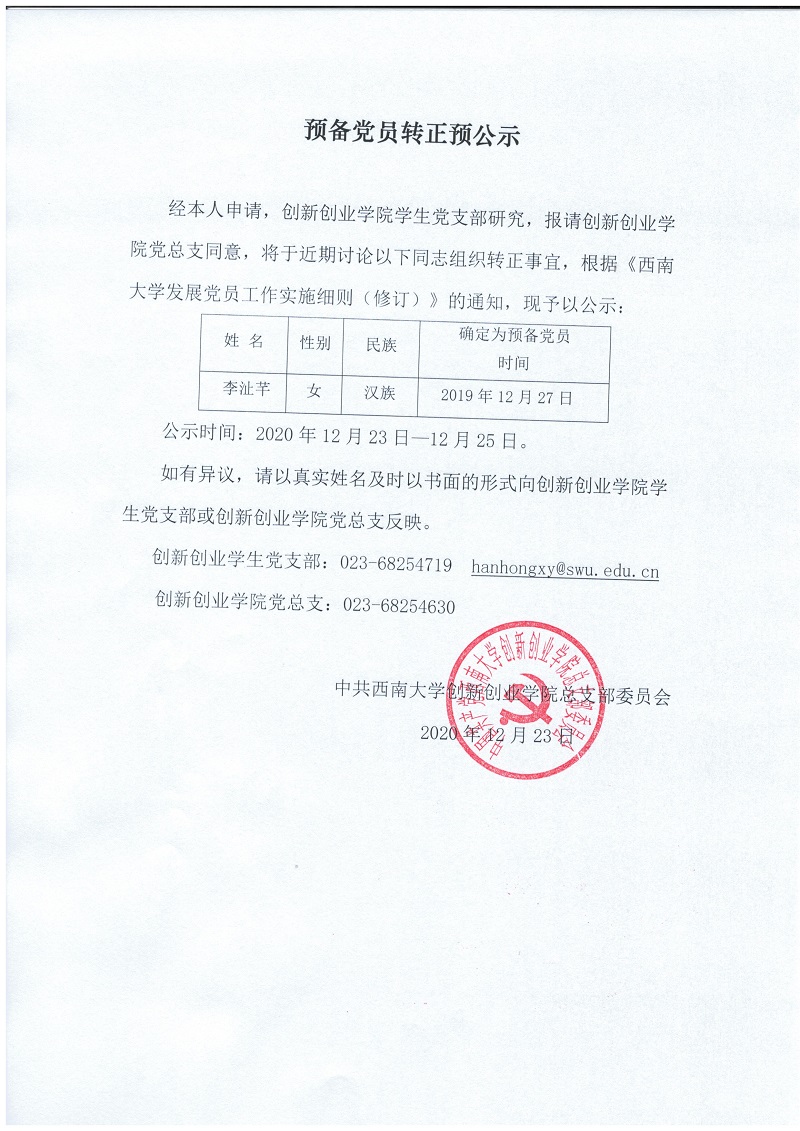 预备党员转正预公示(2020年12月)
