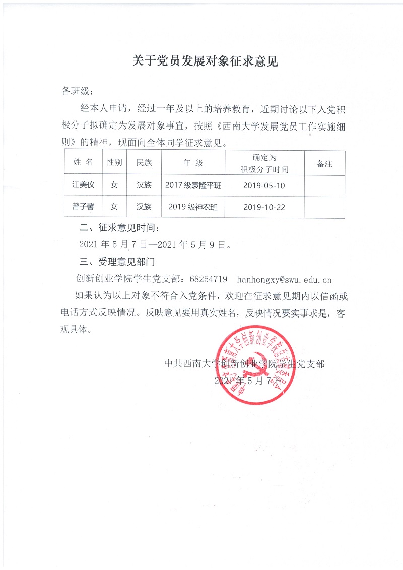 关于党员发展对象征求意见