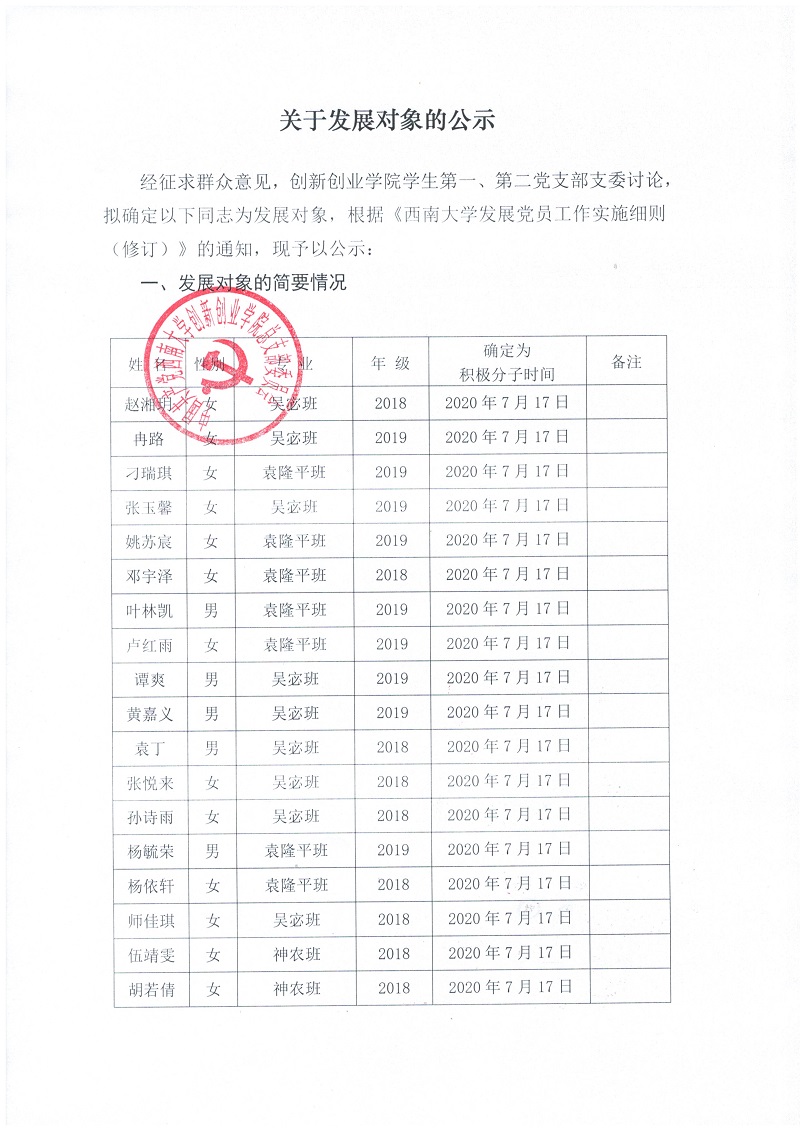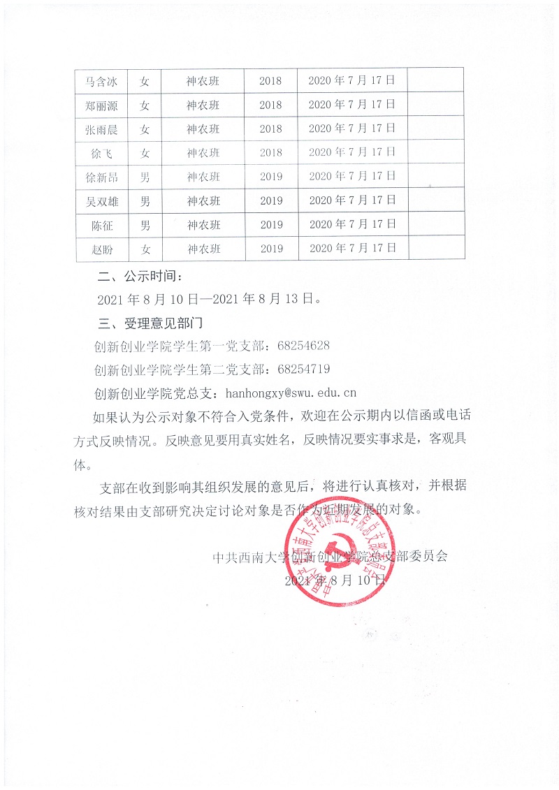 发展对象公示2021年8月