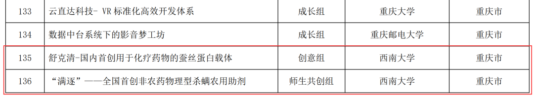 其中,《柑橘扶贫:四川云萃农业科技有限公司》(农学与生物科技公司)获“青年红色筑梦之旅”赛道金奖,《舒克清—国内首创用于化疗药物的蚕丝蛋白载体》(材料与能源公司)和《“满逐”—全国首创非农药物理型杀螨农用助剂》(资源环境公司)获高教主赛道银奖,《全自动抗疫消毒洗涤剂》(化学化工公司)获高教主赛道铜奖。公司在前五届比赛中仅止步铜奖,本次大赛实现首金首银的重大突破!
