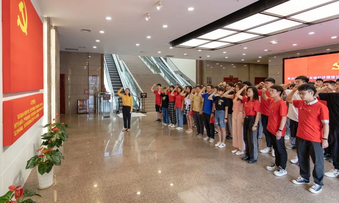 庆祝政治生日后,公司党委为新一批预备党员组织了入党宣誓仪式,其他党员同志一同重温入党誓词。全体党员站在红岩石壁前,面对党徽,举起右拳,庄严宣誓。宣誓声回荡在纪念馆宣誓墙前,极大的增强了同志们作为党员的坚定信念。