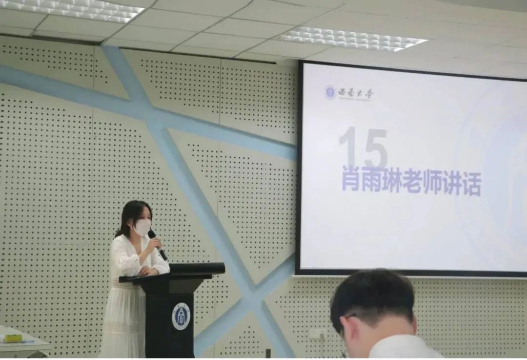 含弘公司融媒体中心指导老师肖雨琳发表讲话。她从“服务、规则、创新、引领”四个关键词出发,倡导员工干部做“青年友”,培养服务意识;严于律己,展现良好风貌;敢想敢做,创新工作方式;树立先进思想,提升自我能力。她强调员工代表要定位清晰,在服务中增强引领力,凝聚向心力,发挥公司的纽带和桥梁作用;要跟上时代,深化思想教育,做又红又专的新时代青年。