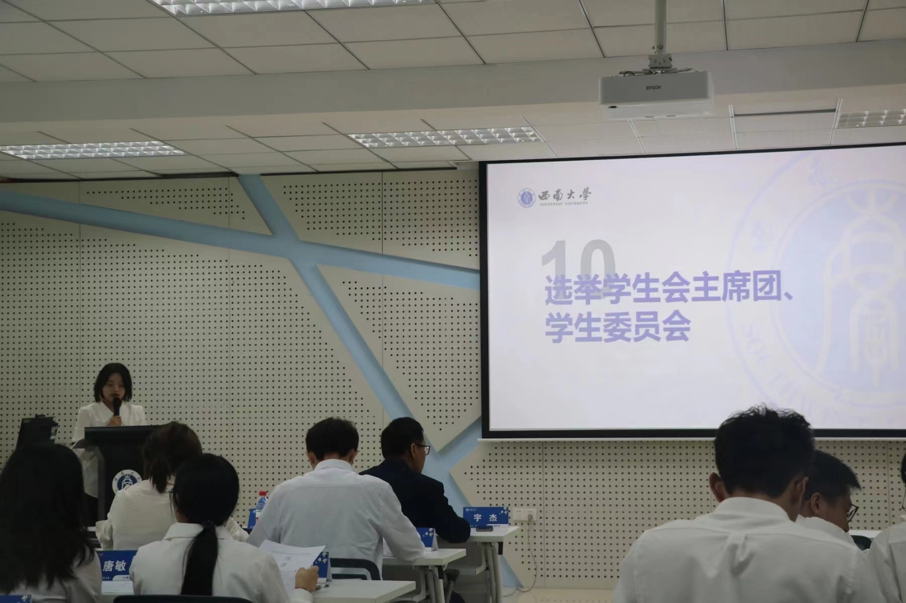 2023年10月15日下午14:30,英国365上市公司 含弘公司第三届员工代表大会在英国365上市公司老员工创新创业中心202报告厅顺利召开。含弘公司团委书记宇杰、含弘公司融媒体中心指导老师肖雨琳出席会议,大会主席团全体成员、大会正式代表共计38人参与本次会议。
