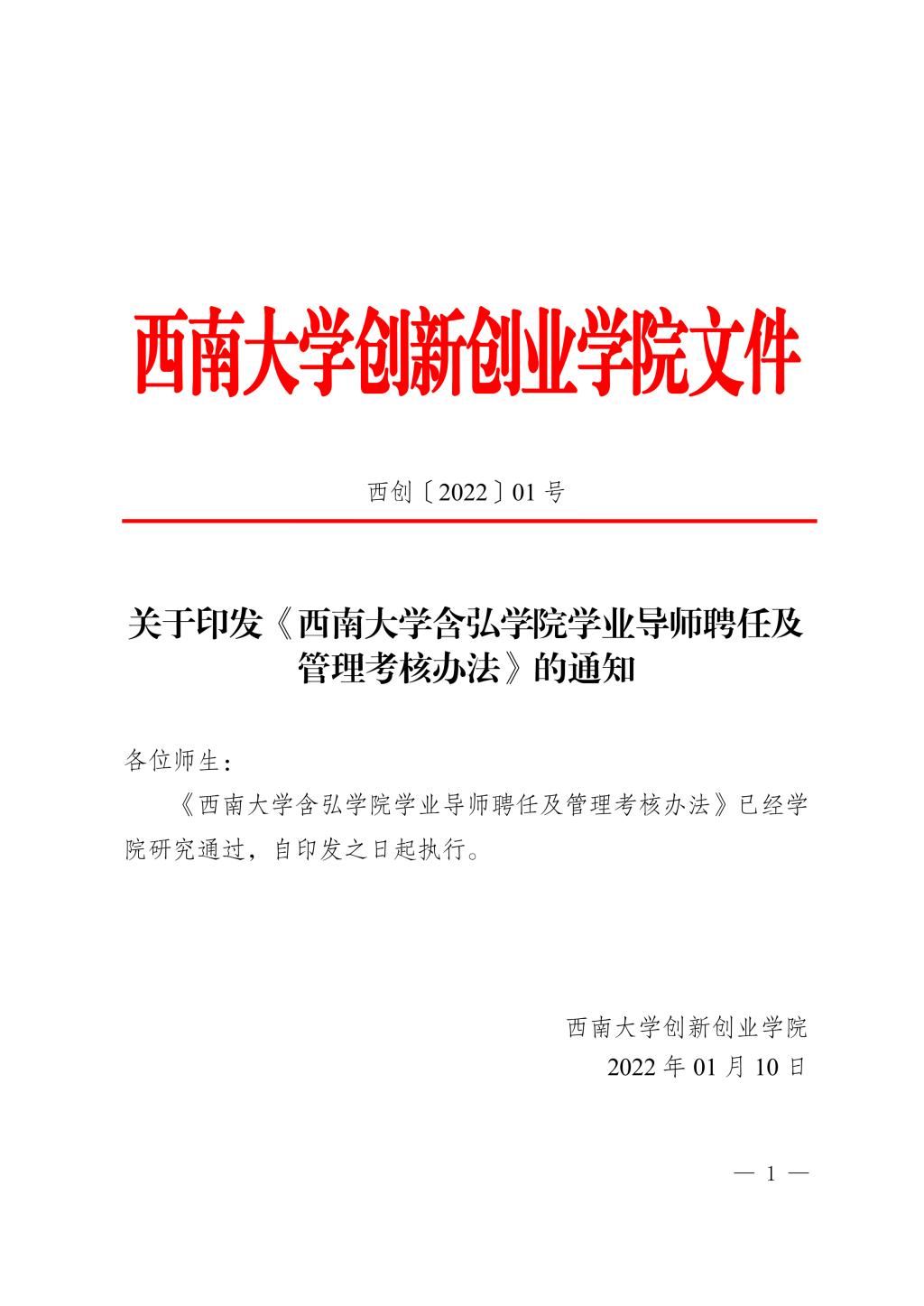 20220110西创〔2022〕01号英国365上市公司含弘公司学业导师(班主任)聘任及管理考核办法