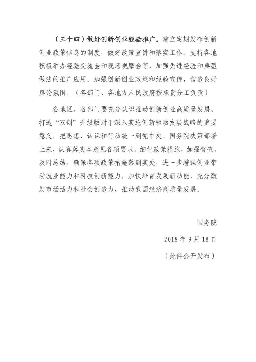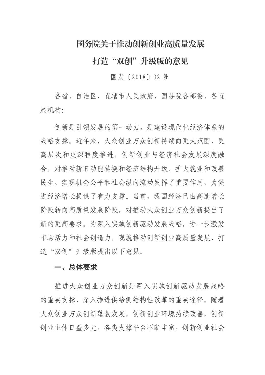 国务院关于推动创新创业高质量发展打造“双创”升级版的意见(国发〔2018〕32号)