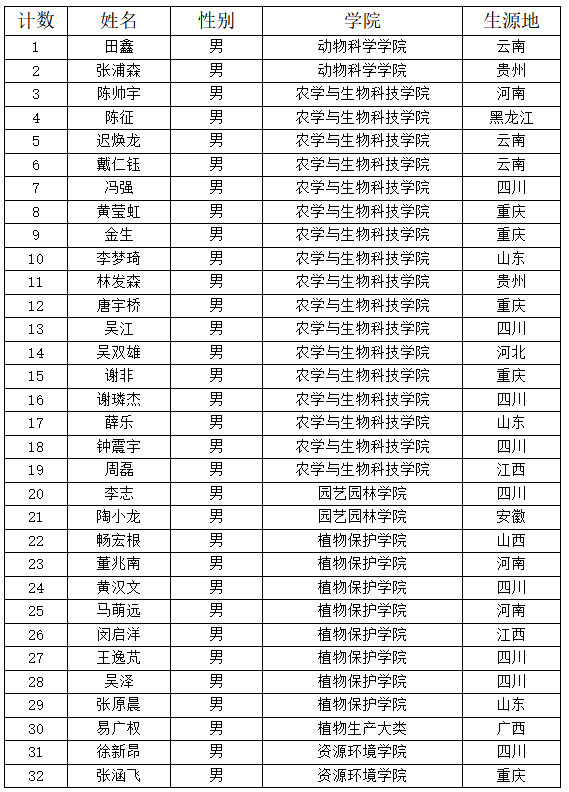 根据《英国365上市公司关于选拔2019级含弘公司“神农班”员工的通知》中选拔条件的要求,含弘公司对2019级105名申请进入神农班的员工进行资格审查,其中95名同学(男生32人、女生63人)达到报名要求,准予进入下一步复试。现将名单公示如下: