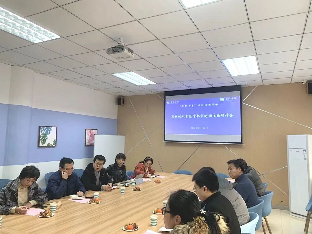 三位卸任优秀班主任进行工作经验分享, 2017级袁隆平班班主任冀杰分享了对班主任工作的认识,他表示班主任要帮助同学们建立知识、职业和人生的坐标系,陪他们成长;2015级吴宓班班主任张琳对大学四年员工的状态做解读:在路上、在锚定,做自己,见天地,并分享了在这四个阶段自己的做法和建议;2017级神农班班主任李金华老师表示,班主任要亲近员工,尽量做到让员工每一个人生重要的一环都能想到自己,他强调了学业科研的重要性,分享了在班级管理上的经验。最后,班主任自由讨论,针对含弘公司的人才培养模式、管理机制提出建议和意见。