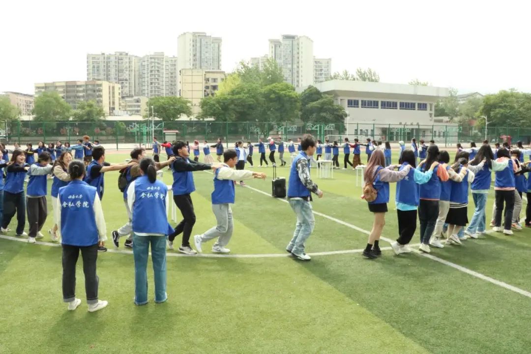 专注学业生活固然重要,而适度放松是为未来的拼搏蓄力。培养方案解读会结束后,2022级全体同学前往第四运动场开展团体心理辅导活动。