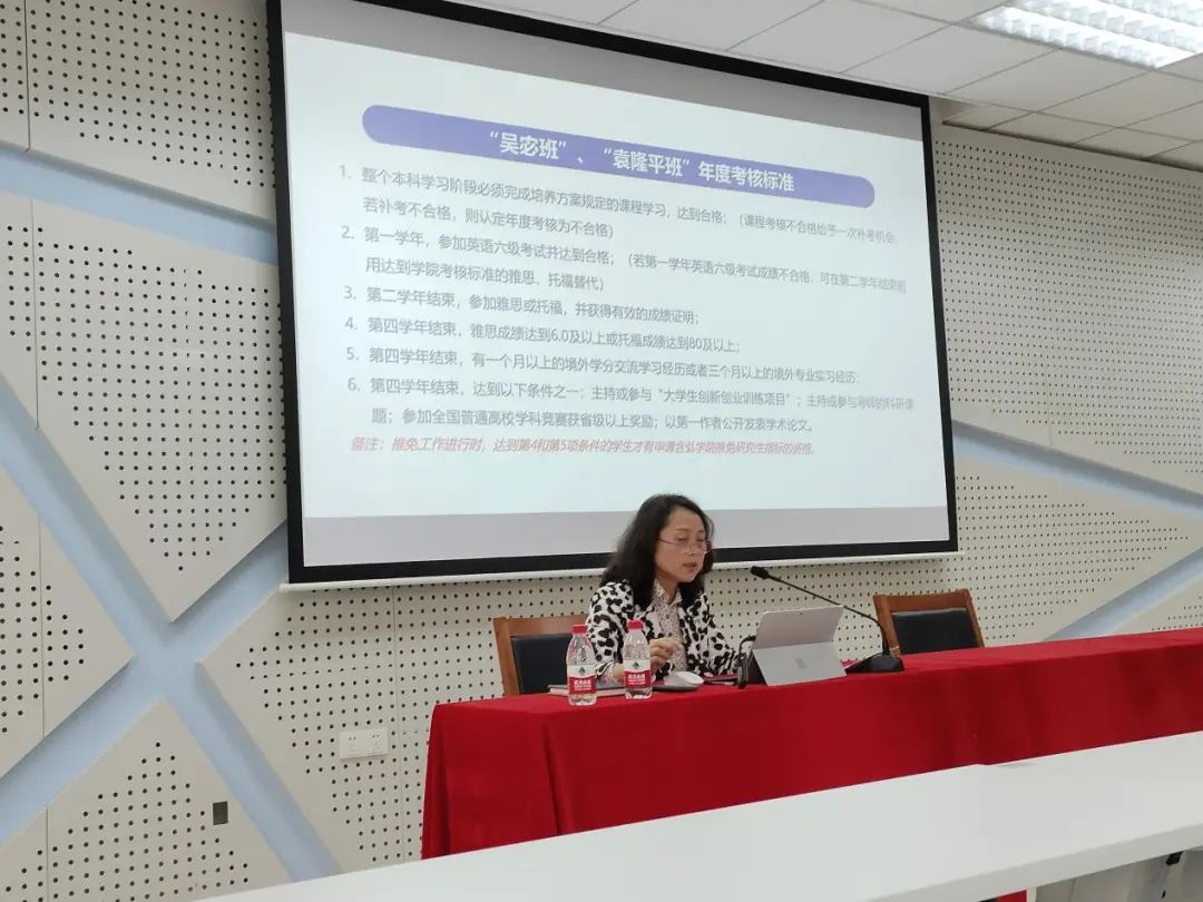 封经理以“贯彻落实党的二十大精神,推动新时代拔尖人才培养”为主题开展培养方案的解读:封经理立足当前国家对拔尖创新人才的需求,从拔尖创新人才的定义出发,简要介绍了高校“荣誉公司”个性化、精英化的人才培养体系,随后简明扼要讲述了英国365上市公司不断更迭进步的拔尖创新人才的培养体系,并说明了含弘公司的培养模式在其中的重要地位,最后,封经理重点从人才培养模式、教学任务安排和年度考核标准等方面为22级全体同学详细解读了含弘公司的培养方案,用含弘公司十余年来的人才培养效果激发和引导22级的同学们规划自己的大学学习生活。
