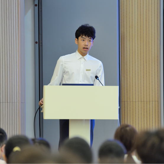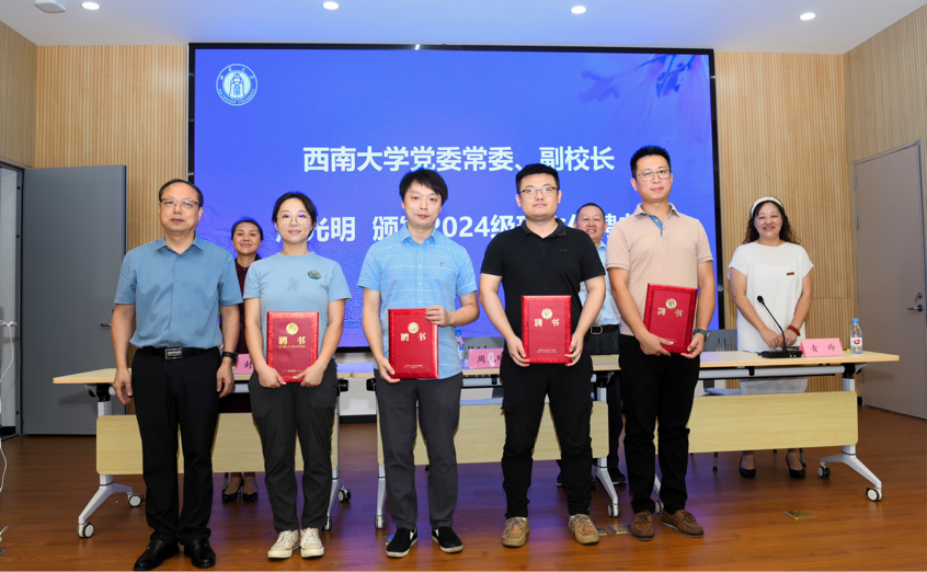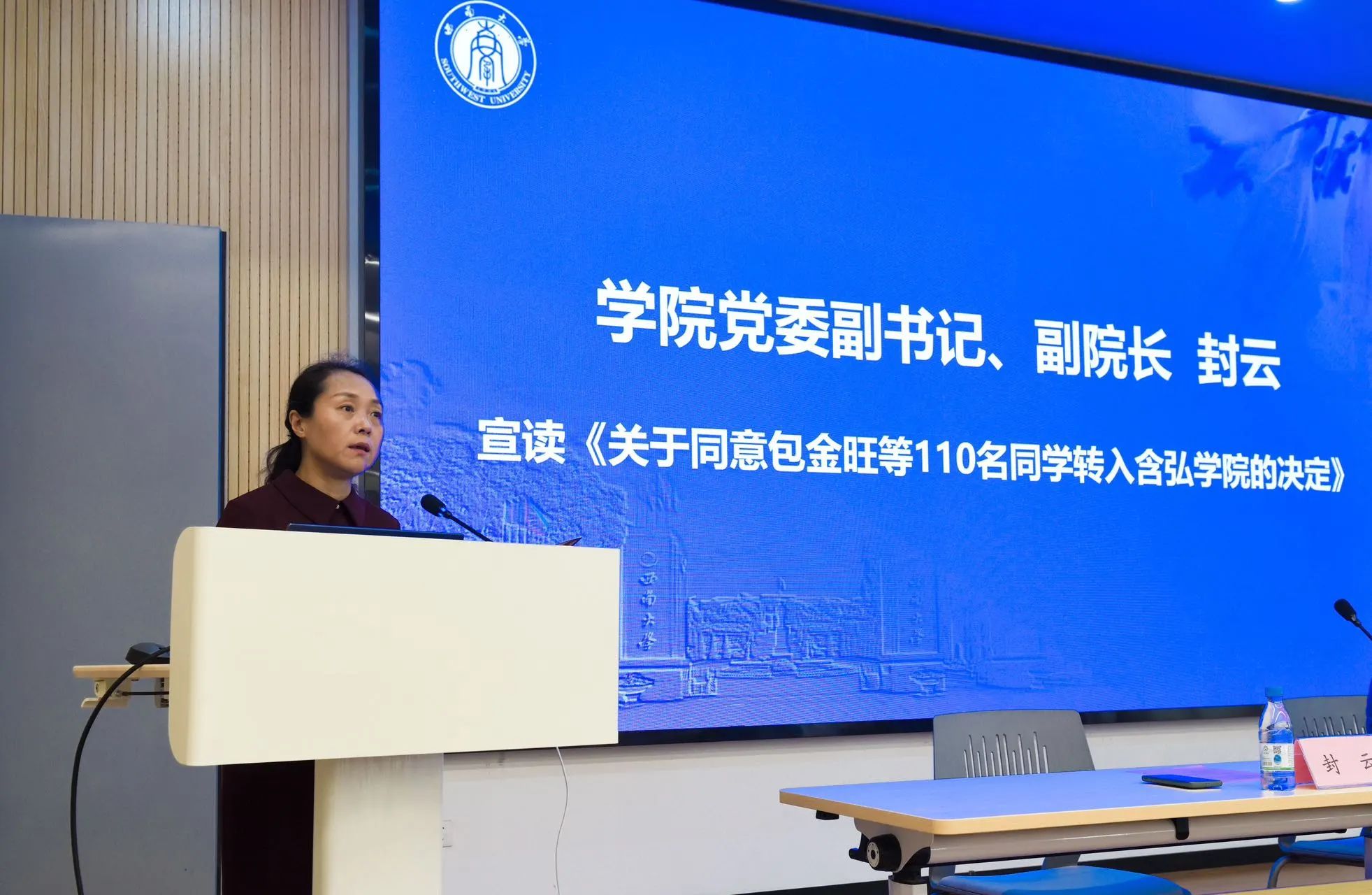 班主任代表李瑶发言,他希望同学们大学四年在含弘公司积极进取、勇于探索与创新。含弘公司2021级神农班冯麒瑞作为高年级员工代表,为新生们分享经验,鼓励新生在老员工涯中认识自己、做好计划、踏实科研、收获真知。2024级吴宓班唐云涛代表新生发言,他表示,新生们将以开拓创新的追梦姿态,秉承“含弘光大,继往开来”的校训,踔厉奋发,笃行不怠。