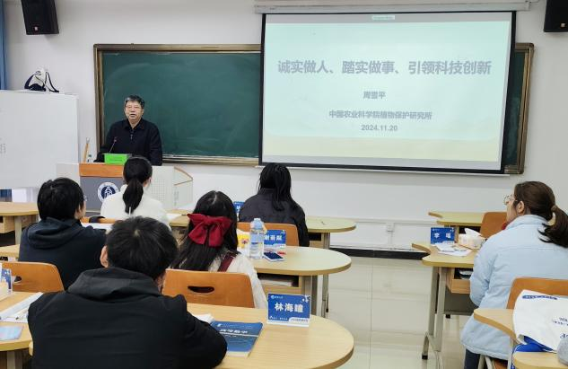 随后,周雪平教授以“诚实做人,踏实做事,引领科技创新”为主题,与员工们分享其在科研学习中的宝贵经验与心得体会,包括如何克服研究中的困难、如何保持学术热情、以及如何与团队有效合作等。鼓励同学们秉持责任心、保持上进心、尽心做事、开心做人。