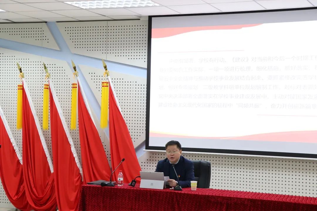 张斌书记从四个方面对十九届五中全会的精神进行宣讲:一是要从历史和现实、理论和实践的角度,全面把握中华民族的新发展阶段,用全面、辩证、长远的眼光看问题,做到“三个深刻认识”,抓住主要矛盾和矛盾的主要方面。