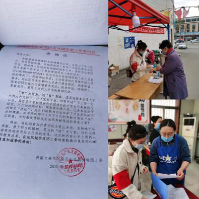 2017级袁隆平班的孙青羽作为一名预备党员,在公司党支部的号召下,注册了济南市莱芜区东方红社区疫情防控志愿工作,负责登记、测量体温、巡逻等值守工作。