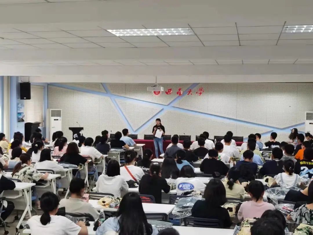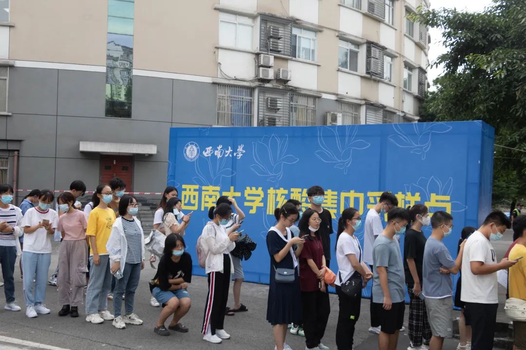 下午3点45分,新生们在老员工创新创业中心集合。4点30分,辅导员带领报考含弘公司的新生们前往第四运动场,进行核酸检测。