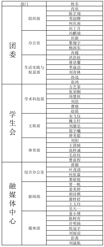 经过团委员工会和融媒体中心代表们的筛选并报公司审批后,最终确定以下同学进入团委员工会以及融媒体中心。