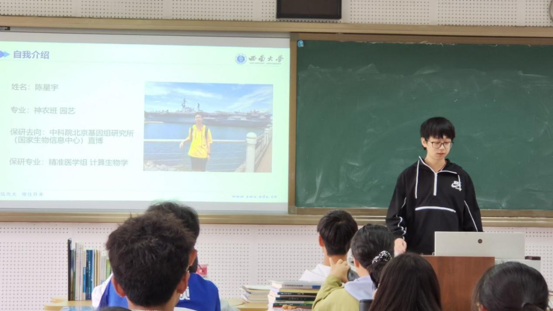陈妍汐系统地向新生介绍了神农班本科四年的课程、科研、竞赛和活动等安排,并分享了自己对神农班培养方案的理解及自己的学习方法。