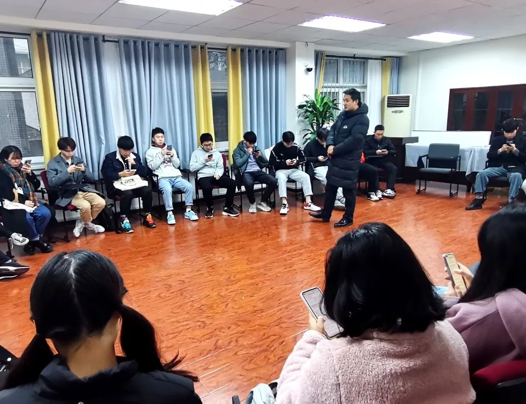 随后,杨主任组织全体同学进行了两项热身游戏。两项游戏各有特色,一方面教会同学们如何在平时紧张的学习中调节心理状态,解决无法集中注意力的问题;同时也让同学们充分活动身体,缓解面对心理辅导时紧张的情绪。在杨主任的带领下,同学们从一开始的拘谨到逐渐的放开身心,拉进了彼此距离。