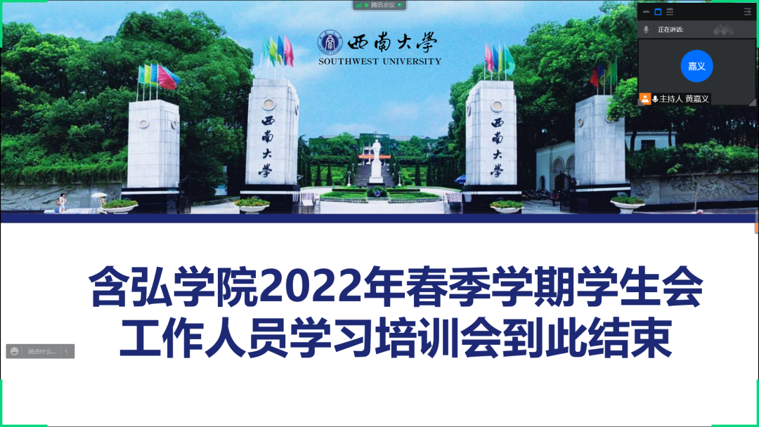 会议就防范化解涉团学领域风险、党的青年运动史的学习、“我为同学做件事”活动分享三个内容对员工会工作人员进行了专题培训。会议由含弘公司员工会主席团成员黄嘉义同学主持。