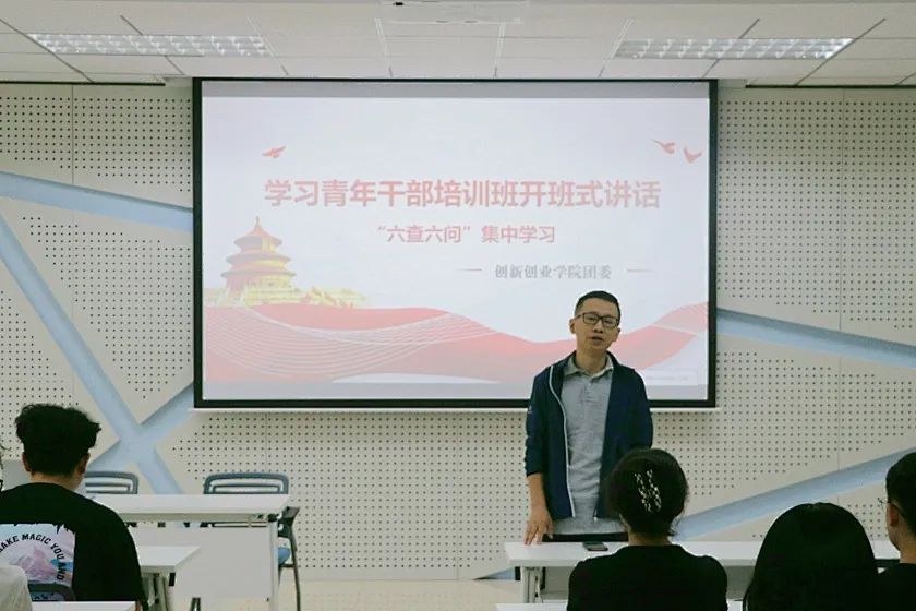 组织部肖欢同学阐明本次学习主题,带领团干部学习《习近平总书记在青年干部培训班开班式上的讲话》精神。习总书记强调:青年干部应当筑牢理想信念根基,树立践行正确政绩观,在新时代新征程上留下无悔的奋斗足迹,要树立远大目标,贯彻党的群众路线,为党和人民事业拼搏奋斗,勇于实践,敢于实践。
