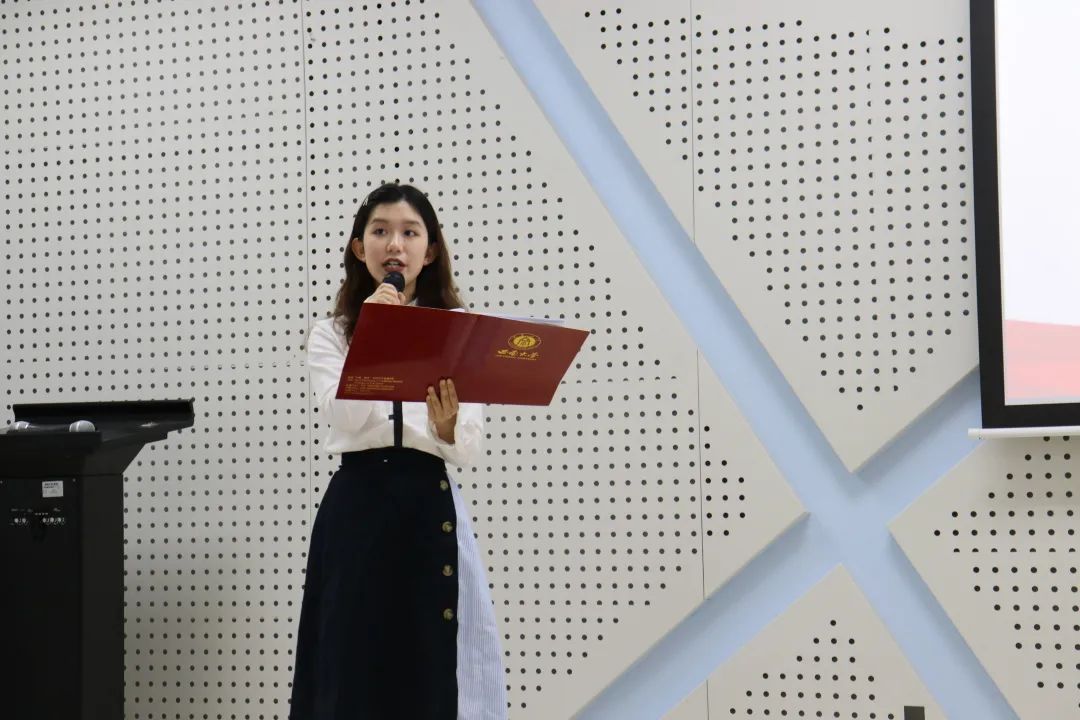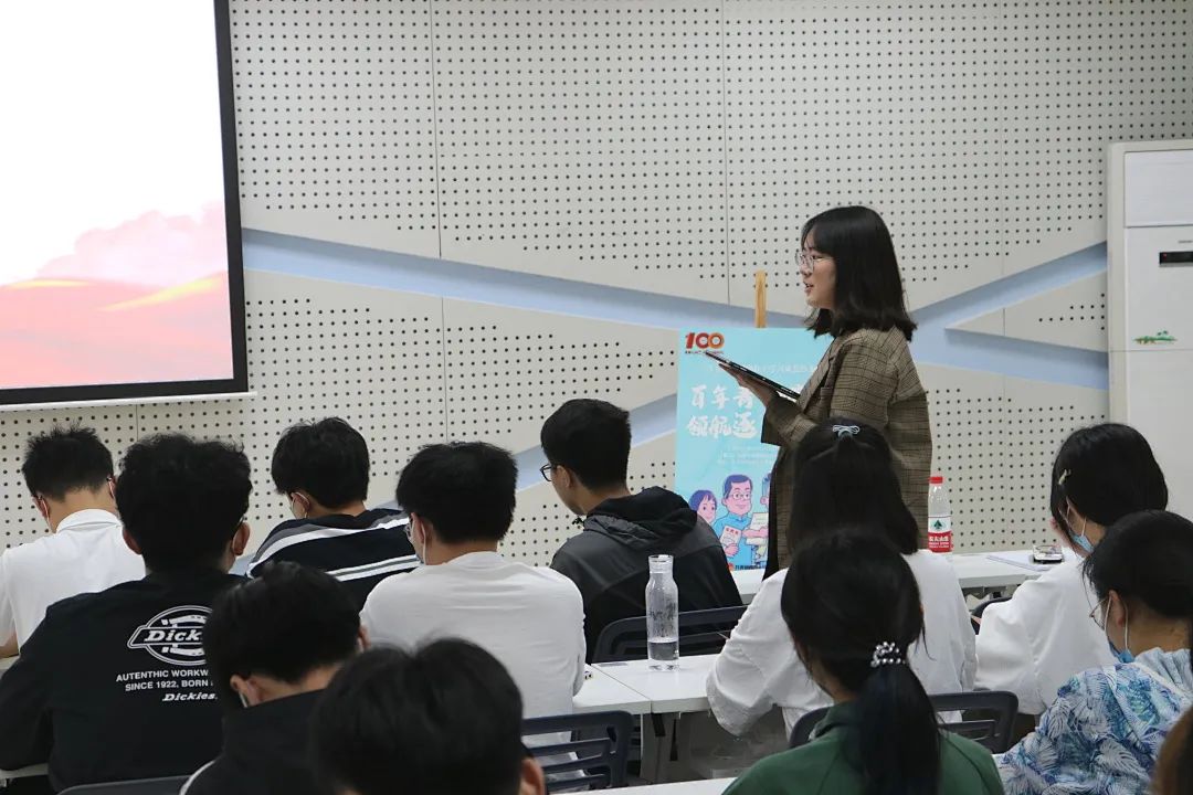 校团委宣传部李雨馨发表“百年青春荣光,领航逐梦时代”主题演讲。在李雨馨同志的导学下,全体师生了解从1916年陈独秀创办《新青年》,宣传“德先生”与“赛先生”的先进思想;到1918年毛泽东担任《湘江评论》的主编;及1919年五四运动爆发,1951年中央主流媒体《中国青年报》创刊;再到“一二·九运动”掀起全国革命高潮等中国百年的革新路程。李雨馨同志指出,唯有青春热血才能冲破梦魇,强大祖国。青春是一场旅行,有了梦想便义无反顾,让青春与祖国同在,让脉搏与祖国同振。作为时代新青年,我们要常怀感恩之心,长存忧患之思;又要永葆革命精神,永葆进取之志:让理想主义成为血脉基因,让理论素养成为看家本领、让从严从实成为鲜明特点、让自信自强成为青春底色。