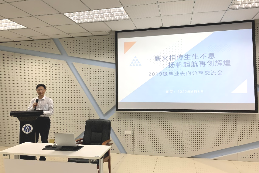 含弘公司召开薪火相传毕业去向分享交流会。机关党委常务副书记梁大明同志受邀参加。按照推免、赴境外、考研三个方向,邀请4位优秀18级毕业生做专题分享。
