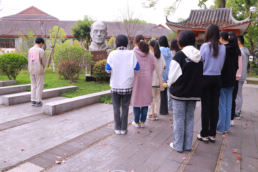 花飨逝者,春暖斯人。含弘学子伴着暮春的绿意与微风来到吴宓先生雕像前追思先贤遗风。