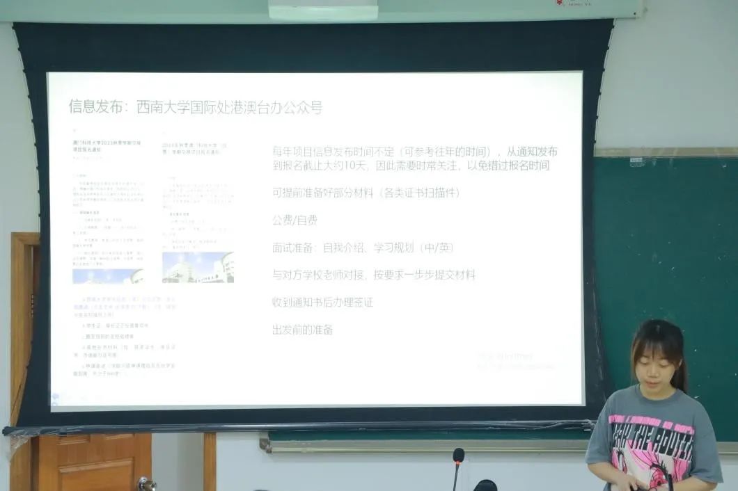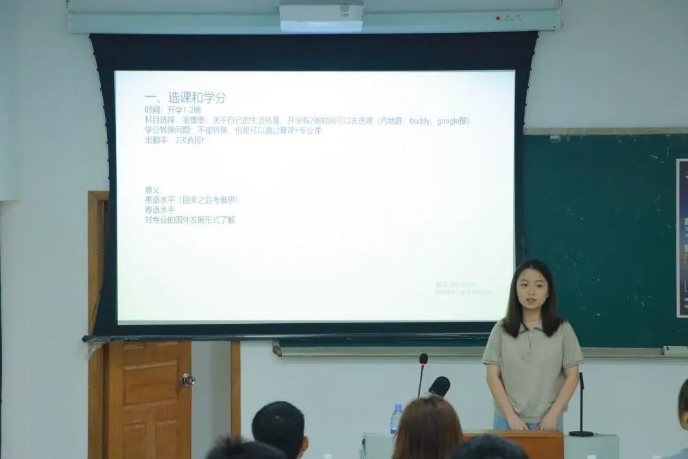 在分享会上,奔赴不同地方进行交流的同学和大家畅谈前往交流大学的学习生活以及与外籍友人的友好互动和有趣经历,并向同学们分享自己交流过程中收获的宝贵经验。
