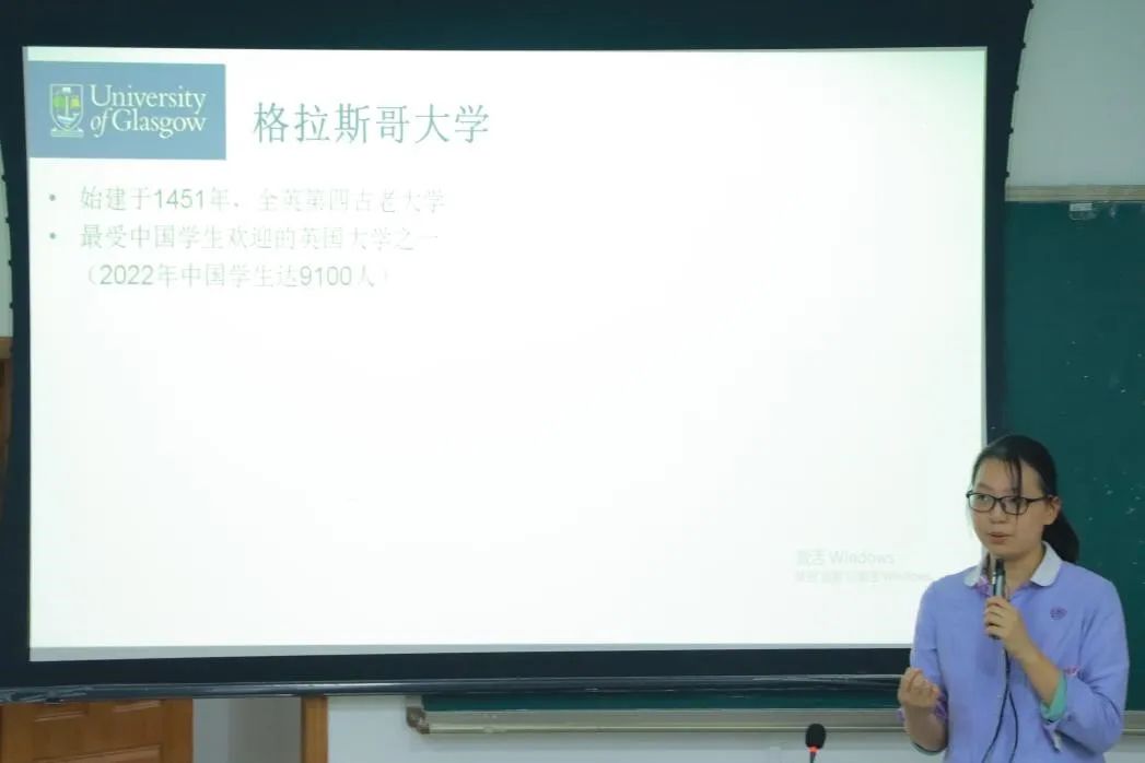 前往英国格拉斯哥大学的刘浩、刘芸希的同学从申请流程、选课方式、课程教学三个方面进行分享,刘芸希同学着重强调了学业的重要性。此外,两位同学还以自己几乎被诈骗的经历提醒同学们在异国他乡一定要具备防诈意识。
