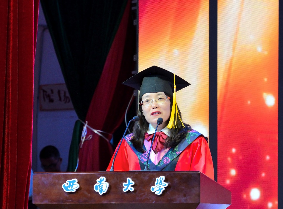 2019级吴宓班冉路代表毕业生发言,她感恩含弘赋予大家“博观而约取,厚积而薄发”的品格,“知悉社会,心怀疾苦”的志向,“心怀家国,肩负使命”的道义。2014级袁隆平班张超代表员工发言,希望大家都能够忠于自己的选择。2019级班主任梅家琴用三个关键词鼓励同学们在各个领域成为顶尖人才,顺利实现自己的人生价值。