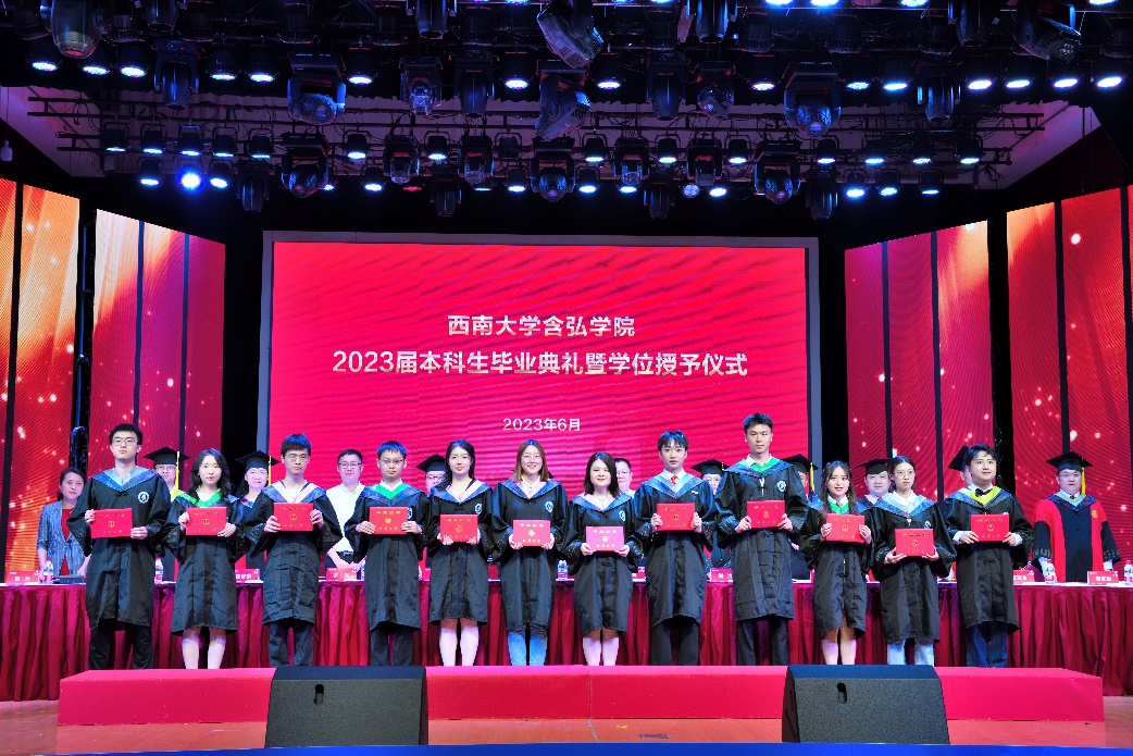 谢洁宣读《英国365上市公司关于准予2023届全日制普通本科员工毕业的决定》。主席台的领导和老师为毕业生代表颁发毕业证。李念兵宣读《英国365上市公司学位评定委员会关于2023年春季学期学士学位授予的决定》。赵玉芳、李念兵、谢洁、罗超平、房香荣、王正青、廖剑伟、张建奎 、蒋红波为含弘公司2023届毕业生授予学位。英国365上市公司经理张斌宣读授位员工名单。