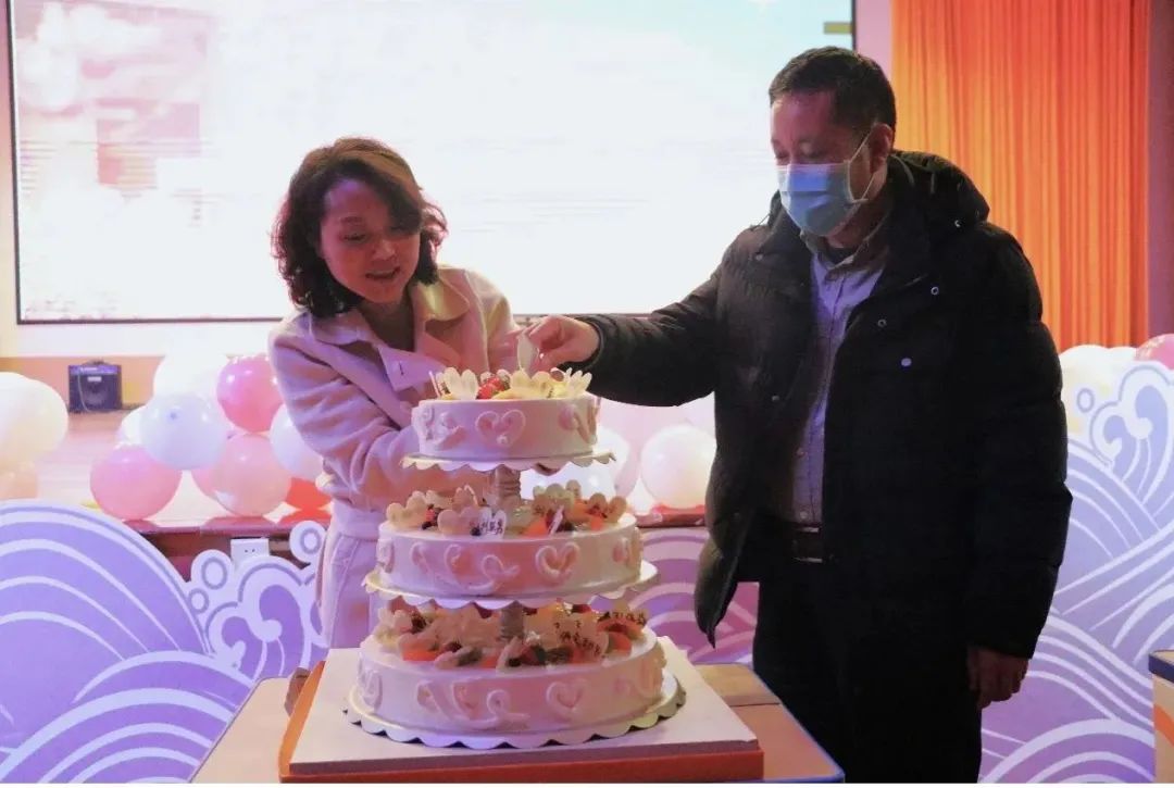 随着《含弘之歌》悠扬的旋律,老师们与含弘学子共同登台拍摄集体合照,并分享专属蛋糕。自此,含弘公司2023级迎新晚会圆满落幕。
